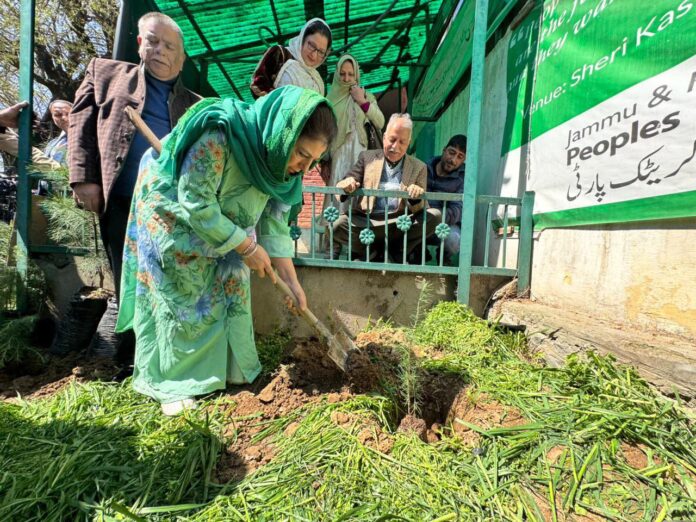 SRINAGAR, Mar 25 (NVI): Mehbooba Mufti on Wednesday led a plantation drive at the party headquarters in Srinagar, along with senior leaders of the People’s Democratic Party.